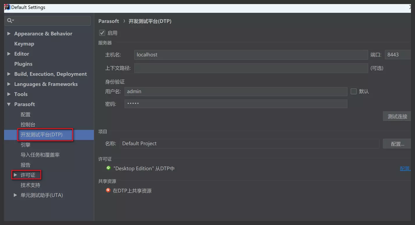 许可证的配置分为锁定许可证和浮动许可证,若是是浮动许可证,则需配置连接DTP,如下图示: