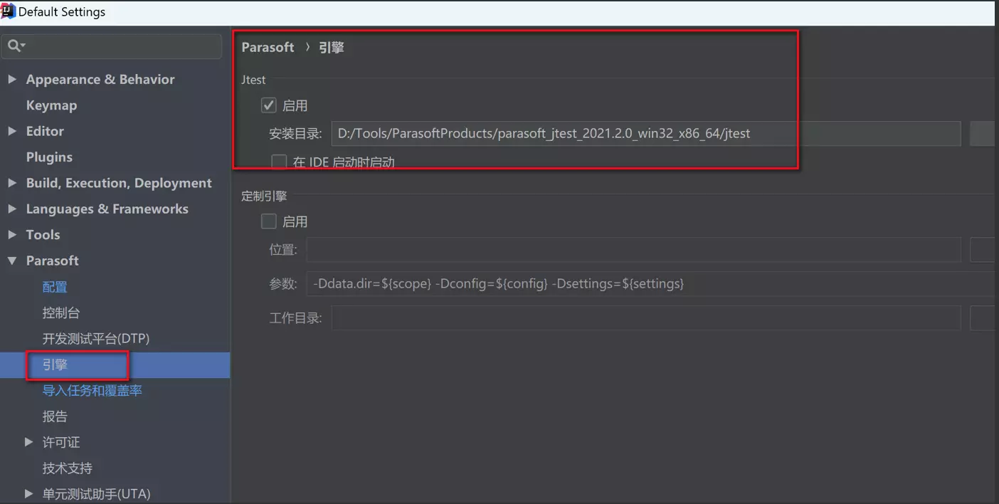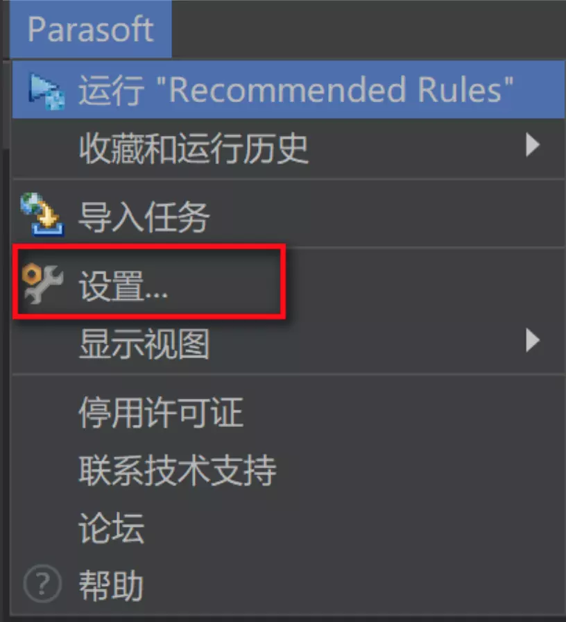 选择Parasoft菜单==>设置,如下图示: